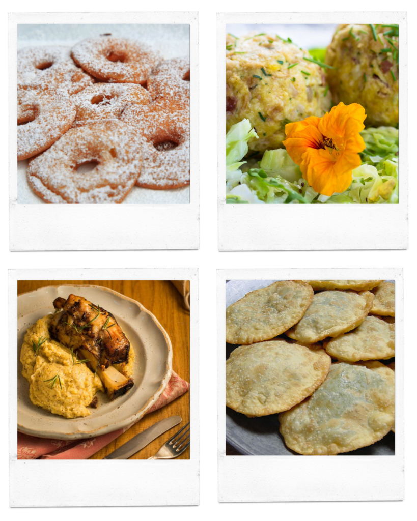 Delizia il tuo palato con i sapori autentici dei canederli, frittelle di mele e stinco con polenta.